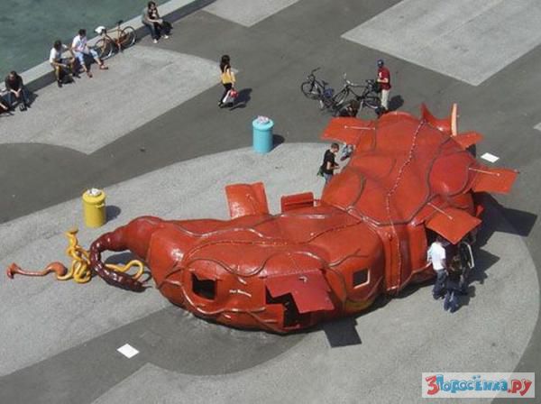 Голландские дизайнеры, знаете ли, такие голландские... Кого бы еще вдохновила идея построить бар, повторяющий пищеварительную систему человека. От и до. От языка по пищеводу, желудку, кишечнику - до самой последней "инстанции", то есть выхода из человеческого тела. В продолжении небольшая фотоподборка этого объекта, впечатлительному зрителю к просмотру не рекомендуется.