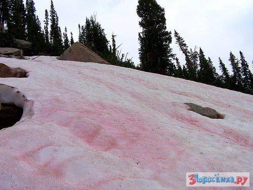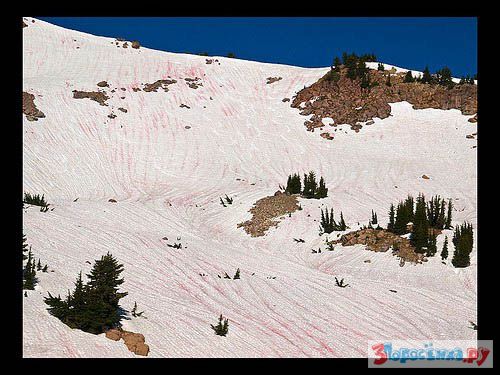 На протяжении тысячелетий загадка этого арбузного снега (watermelon snow) удивляла ученых всего мира. Даже в трактатах о природе Аристотелем был отмечен этот природный феномен.