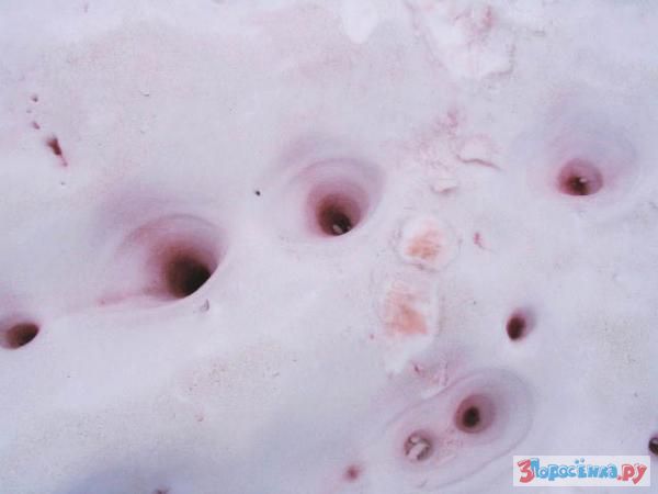 Местные жители иногда даже употребляют в пищу этот снег, так как отличить его от арбуза, точнее арбузного мороженого, бывает довольно сложно. Однако некоторые виды этих водорослей бывают ядовиты. Не смертельно, но прием их вовнутрь может повлечь за собой... розовую диарею :)