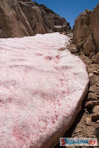 Если вы находитесь в данный момент в горах Сьерра-Невада в штате Калифорния (США), то вы в и руках увидите самый настоящий арбузный снег, имеющий не только структуру и запах, но и цвет и даже вкус арбуза! Здесь на высоте трех тысяч метров наблюдается это уникальнейшее чудо природы.