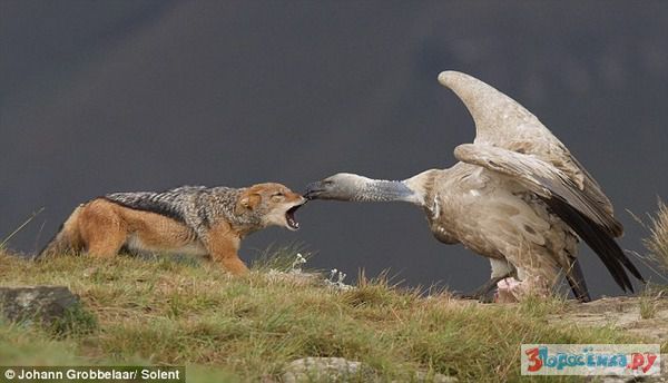 Битва за падаль: шакал и гриф