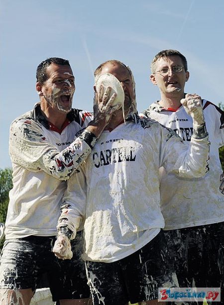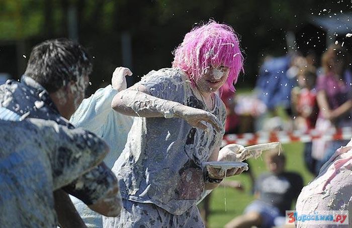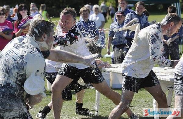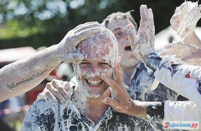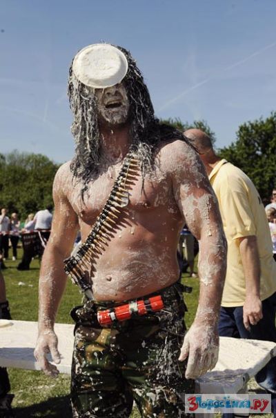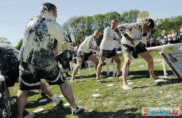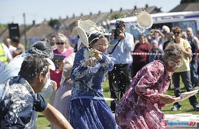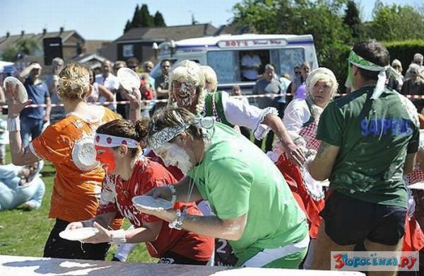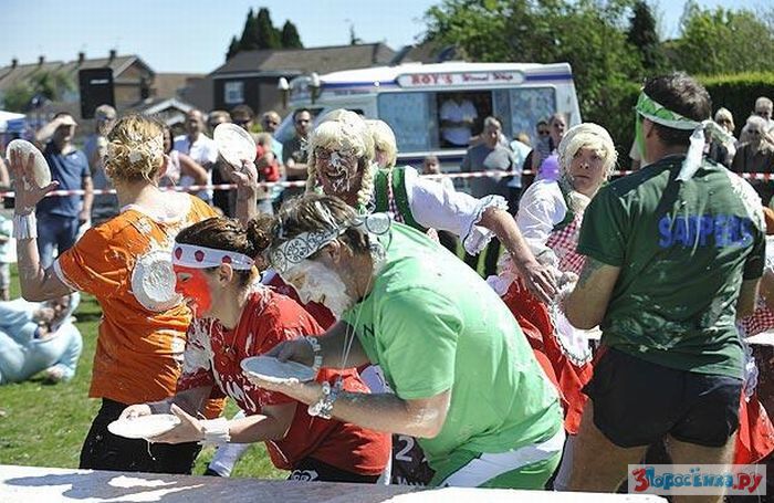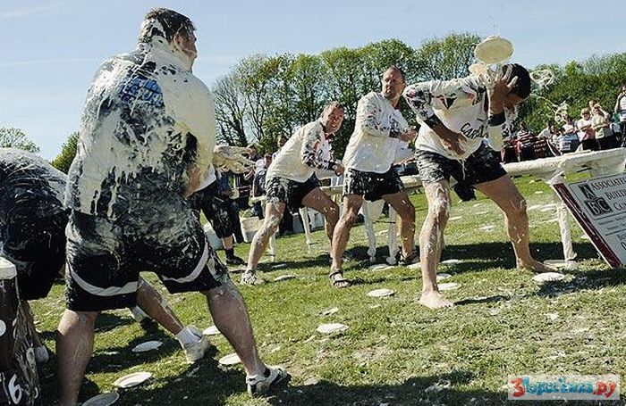 Чемпионат по боям кремовыми пирогами проходит в селе Коксхет вблизи Мейдстон графства Кент. Максимальное количество очков начисляются за бросание пирога прямо в лицо соперника. Идея проведения благотворительной акции, первая из которых состоялась в 1967 году, пришла из комедии Чарли Чаплина, "Behind The Screen". Участники команд приезжают из таких отдаленных мест, как Германия и Южная Африка.