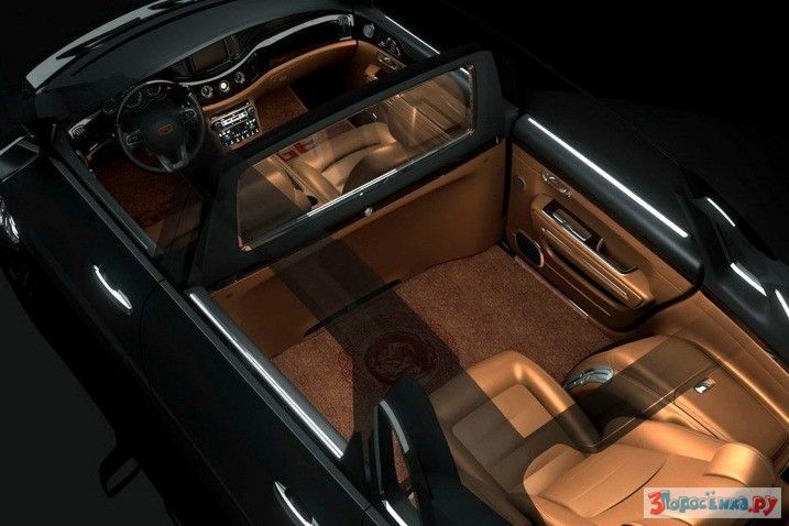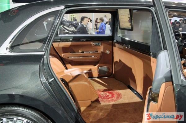Этот автомобиль сделали китайцы, очень уж он напоминает Rolls-Royce. Давайте заглянем в салон, очень все шикарно, особенно понравился дизайн задней части салона, сиденье выполнено в виде трона, роскошь для VIP-персоны.