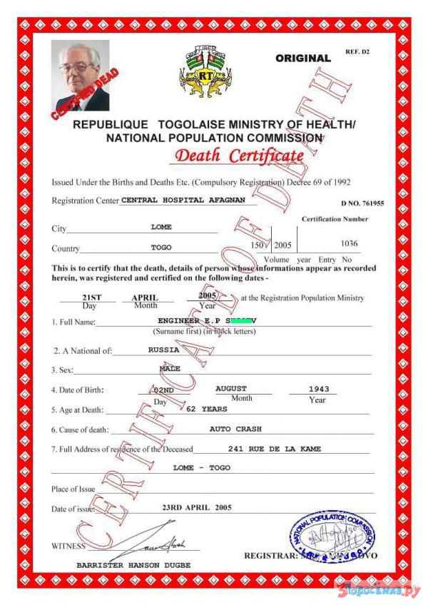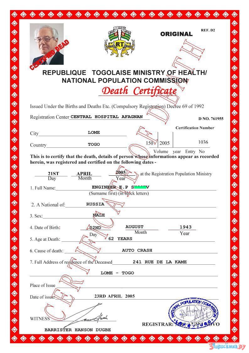 Жизнь преподносит сюрпризы, ребзя. Пару недель назад я получил на мыло письмо из солнечного Того от адвоката по имени Хансон Дугбе. На безупречном английском канцелярите адвокат Хансон предлагал мне попилить наследство его покойного клиента, который по счастливой случайности оказался моим однофамильцем. Сам клиент погиб в автокатастрофе, не оставив после себя наследников, но оставив заначку в банке размером 8 500 000 долларов сша (Eight million five hundred thousand U.S. dollars). Отчаявшись найти в заснеженной России среди медведей и балалаек хоть какого-нибудь родственника покойного, Хансон полез на фейсбук, нашел его однофамильца с простовато-вороватой внешностью, и предложил ему, то есть мне, представиться наследником и, за небольшую мзду, получить дядюшкины накопления. Минут пятнадцать после этого я пребывал в состоянии эйфории и был настоящим долларовым миллионером, друзья мои. За это короткое время деньги успели полностью растлить мою душу: я написал заявление об увольнении, отправил к хуям нескольких коллег и многажды наплевал им в банку с кофе. Позже, нечеловеческим усилием воли, я все-таки заставил себя погуглить этого Хансона и его контору, и Хансон, конечно же, оказался конченым жульманом. Вот статья из вики про так называемую нигерийскую схему, если кому интересно. Я бы простил Хансону этот неопытный наезд, но пацаны с района настояли на необходимости симметричного ответа и, под семки и пиво, мы придумали, как отжать бабло у самого Хансона. Выразив в ответном письме свою готовность к сотрудничеству, я начал обмениваться с Хансоном письмами, полными лжи и лицемерия. Сам Хансон как мог убеждал меня в подлинности происходящего. Вот, например, свидетельство о смерти инженера Е.П. С****ва: