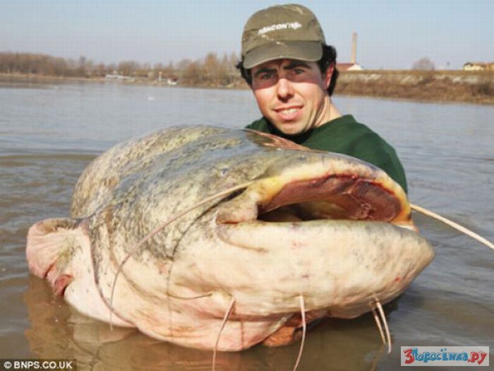 Невероятный улов получил простой итальянский рыбак Роберто Годи. Отправившись порыбачить на реку По, он поймал 113-килограммового сома. Сом попался на обычную удочку и сопротивлялся 45 минут, пока на помощь Роберто Годи не пришли другие рыбаки. Вместе они сумели вытащить огромную рыбину на берег и взвесили ее. Гигант побил все установленные ранее рекорды, став самой крупной когда-либо пойманной в Европе пресноводной рыбой. В длину "сомик" достигает почти 2,5 метра. По мнению специалистов-ихтиологов, возраст сома составляет от 20 до 30 лет.