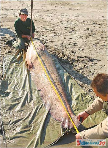 На фото видно что сом попался не на простую "удочку", а на спиннинг с мультипликатором (катушка) такая снасть предназначена для ловли "марлина"(меч-рыба) вес которого достигает у 4 раза больше етого сома!!! И вообще река "По" славится рекордными сомами , 2 предыдущих рекорда были ее обитателями !!! Коллеге рыбаку с Италии респект!!! ЗАЧОТный трофей!!!:sm0003: