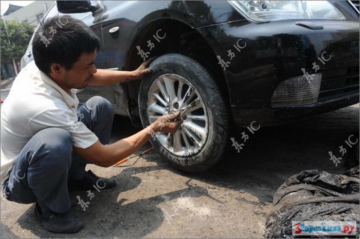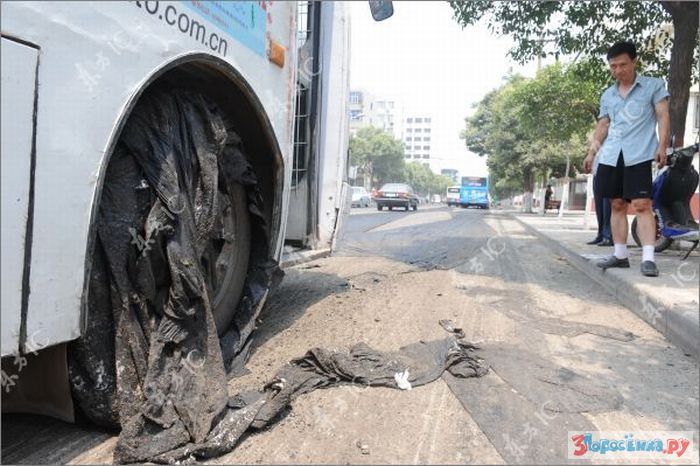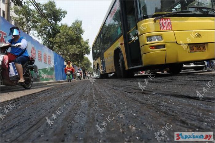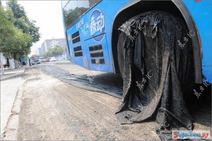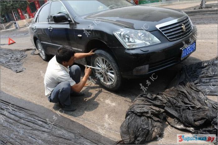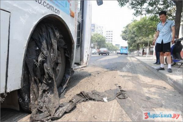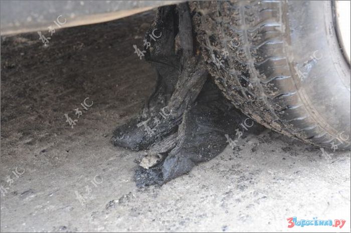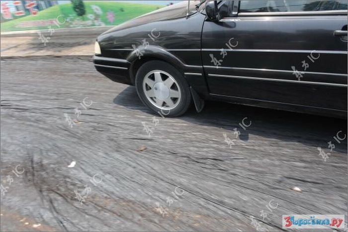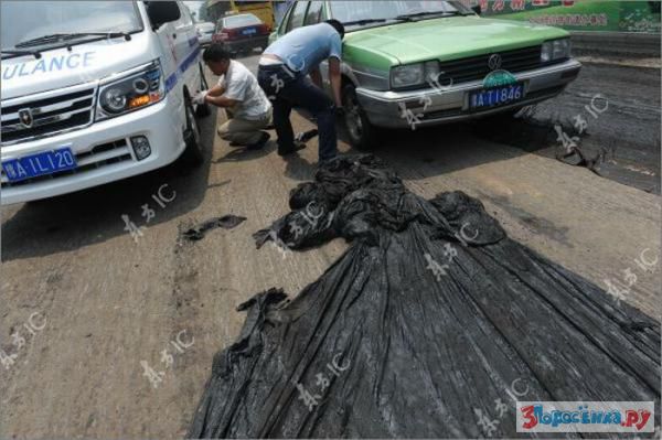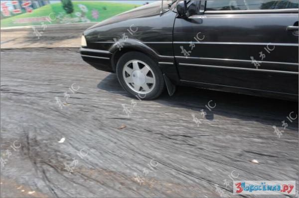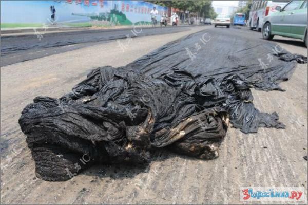 idiot ebanuy. eto ne asfalt - eto bandagnaya lenta, na kotoruyu ukladyvayut asfalt, chtoby on ne treskalsya/