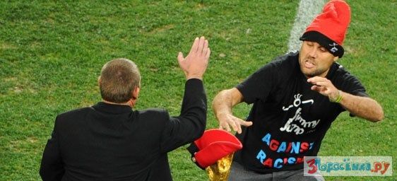 "Как это возможно, что известный каскадер, который бегает на поле в Лиге чемпионов, смог простоять 20 секунд на сцене?", - раскритиковал организаторов "Евровидения-2010" журналист испанского агентства EFE Матео Санчо. Отметим, что на счету Джимми Джампа десятки забегов, в основном на спортивных мероприятиях. Самый знаменитый состоялся на Евро-2004, во время финала Португалия - Греция. Выбежав на поле, он кинул флаг Барсы в лицо Луишу Фигу, который перешел в мадридский Реал.