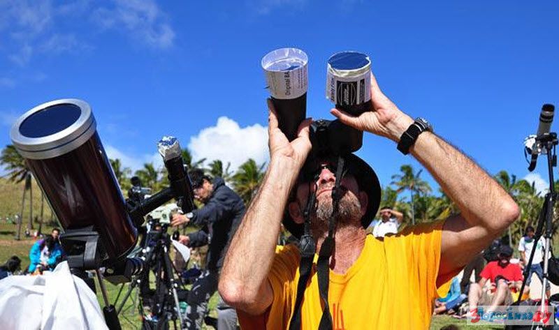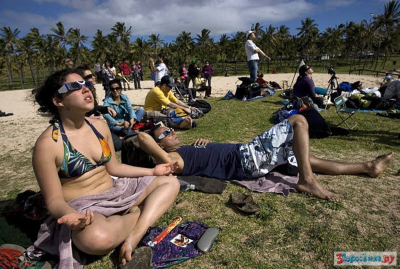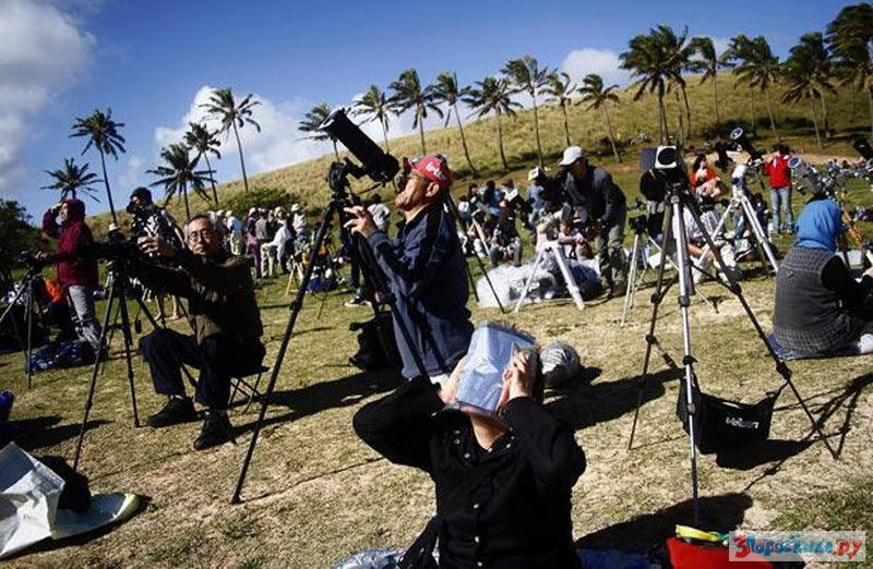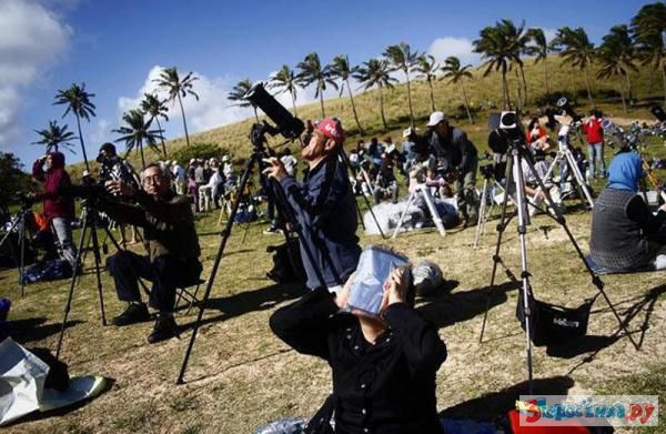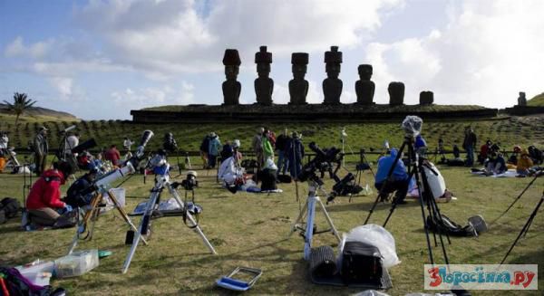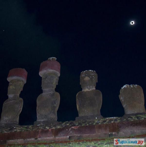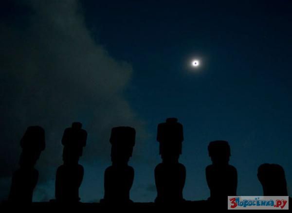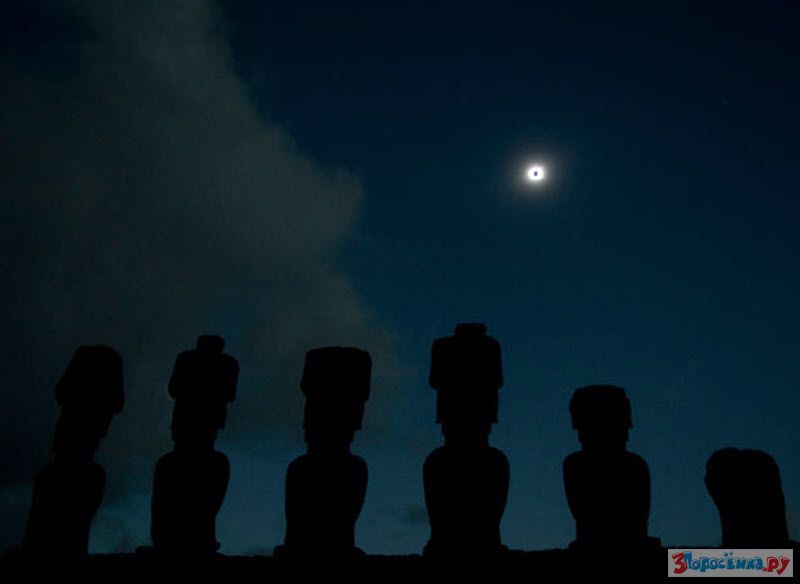 Тень от Луны диаметром в 260 километров прошла через Остров Пасхи, Французскую Полинезию, а также затронула юг Чили и Аргентины.