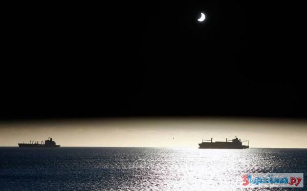 Южная часть Тихого океана стала главной сценой полного солнечного затмения 11 июля 2010 года. Полную фазу затмения можно было увидеть только вдоль узкого трека от островов Кука к южной части Чили и Аргентины, но на большой части Южной Америки можно было насладиться частичным солнечным затмением. Это фото было сделано в Вальпараисо, Чили.
