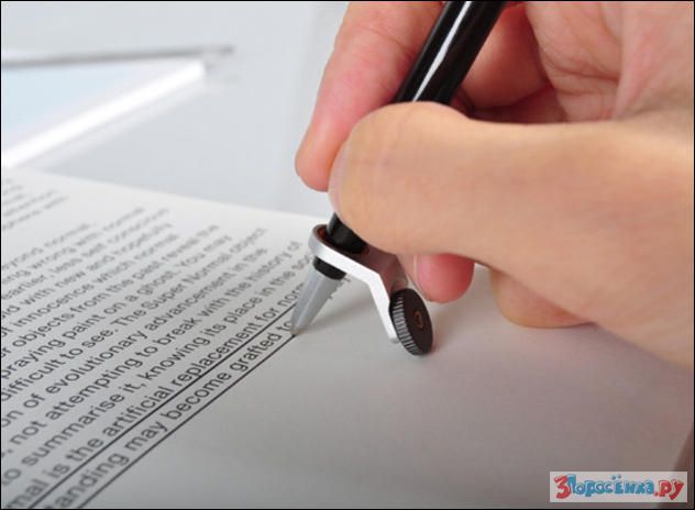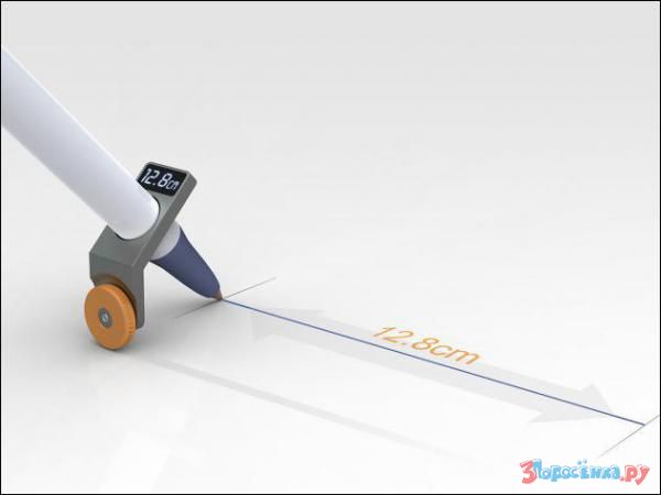 К сожалению, не все родились прирожденными чертежниками и могут без линейки нарисовать абсолютно прямую линию (я этому умению нашего препода по начерталке просто поражался). А вот этот небольшой гаджет поможет и линию начертить, и "пробег" ручки замерить без линейки ))