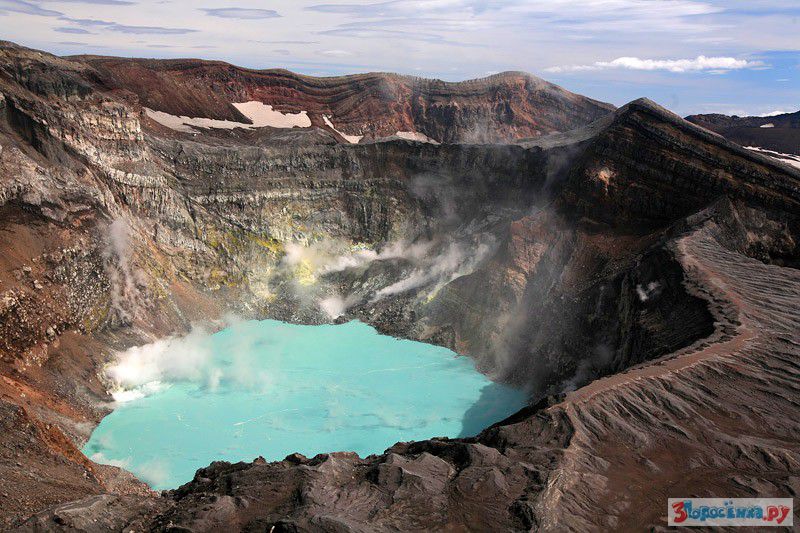 А вот несколько кадров Горелого с прошлогодней съёмки. Теперь кислотное озеро высыхает, а пресное, стало грязным, все ледники которые там были, растаяли.