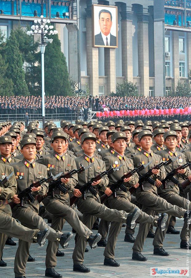 10 октября в Пхеньяне прошел грандиозный военный парад в честь 65-летия правящей в КНДР Трудовой партии Кореи. В параде приняли участие более десяти тысяч военнослужащих - вчерашний парад, как пишут, стал самым массовым за всю историю Северной Кореи.