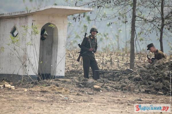 На границе КНДР с Китаем сегодня всё было, как обычно - северорейские солдатики на берегу пограничной реки Ялуцзян стали сюжетом для очередного снимка "с той стороны" китайского фотографа Джеки Чена.