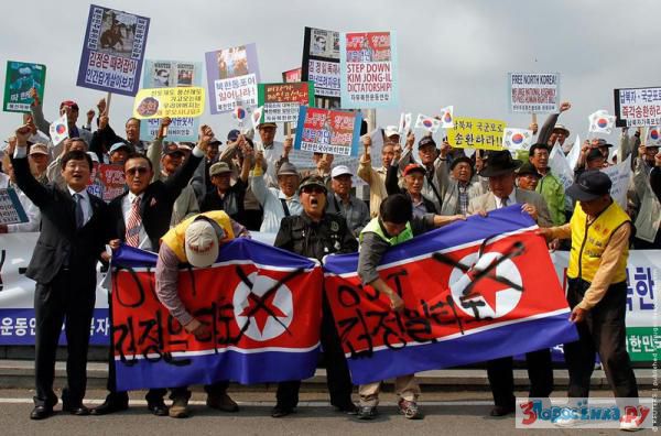 Южнокорейцы отметили праздник по-своему - общественные активисты собрались сегодня в районе границы между двумя Кореями и выразили свой протест против правления северокорейского диктатора. В сторону Севера были по традиции запущены большие воздушные шары с привязанной к ними пропагандистской литературой.