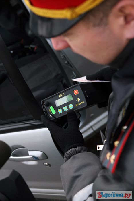Стационарный пост при въезде в Москву на Каширском шоссе. Сначала сотрудник ГИБДД объясняет, как работает прибор для проверки светопропускания стекол. В общем, ничего сложного: с двух сторон крепятся специальные датчики и через несколько секунд уровень светопропускания отражается на экране. Кстати, его использование возможно только при температуре не ниже -10 градусов.