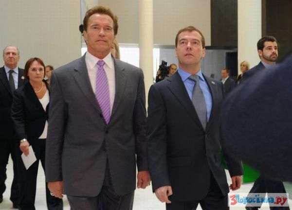 Он вернулся, помните его знаменитое I'll be Back! Так вот, Арнольд Шварценеггер посетил Москву, сначала губернатор Калифорнии шокировал жителей столицы тем, что спустился в метро, затем "Терминатора" покатал на автомобиле "Чайка" лично президент Дмитрий Медведев. Наконец, на совещании по развитию российской Кремниевой Долины, ради чего он и приехал в Москву, Шварценеггер заявил, что американские инвесторы будут сотрудничать с советскими учеными, ну и наконец, забежал в тренажерный зал, для поддержания себя в тонусе наверное :)