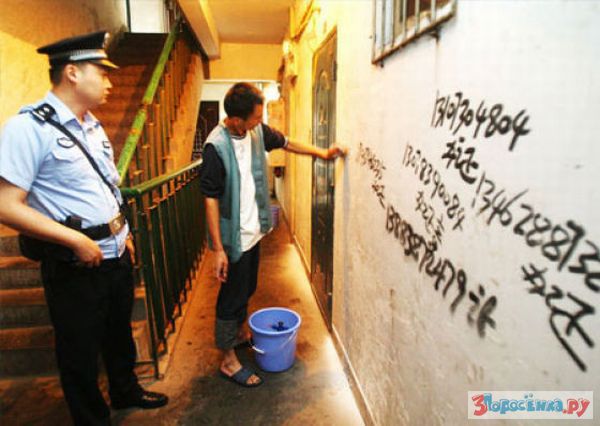 Рекламные надписи на стенах и асфальте популярны не только в России. Например, в Китае такой вид рекламы тоже очень популярен. Но он так же и незаконен. И если полиция поймает подобного рекламщика, то они заставят его отмыть не только ту стену, которую он испортил, а также и сотни других испачканных стен.