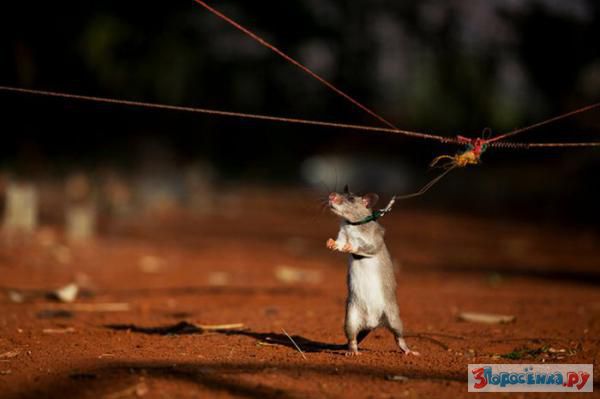 Одна голландская организация занимается дрессировки крыс, которые в будущем используются для разминирования минных полей. На данный момент крысы уже помогли обнаружить сотни мин в Танзании и Мозамбике. Сам процесс дрессировки довольно сложный. Дело в том, что мины не срабатывают на вес крыс, но крыса в состоянии услышать щелчок, если наступит на нее, или же унюхать ее в земле. Для начала маленьких крысят учат ходить ровными линиями и катать специальную пробку. Со временем они набираются опыта и уже могут ходить сами и возвращаться к человеку, в случае обнаружения мины. Тренер крыс говорит, что они экспериментировали со многими животными и крысы подходят для этого намного больше, чем собаки.