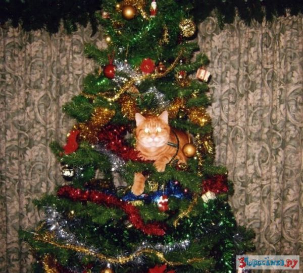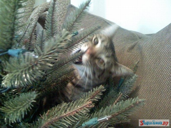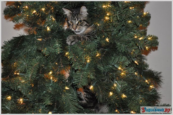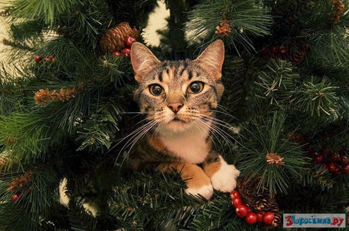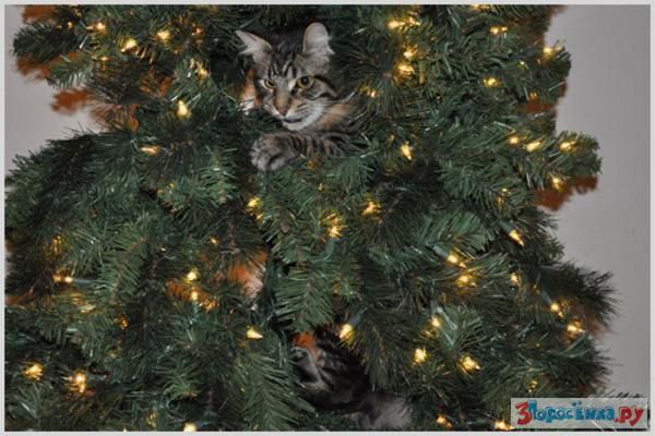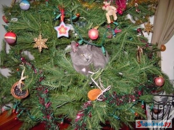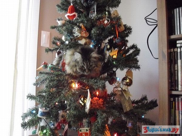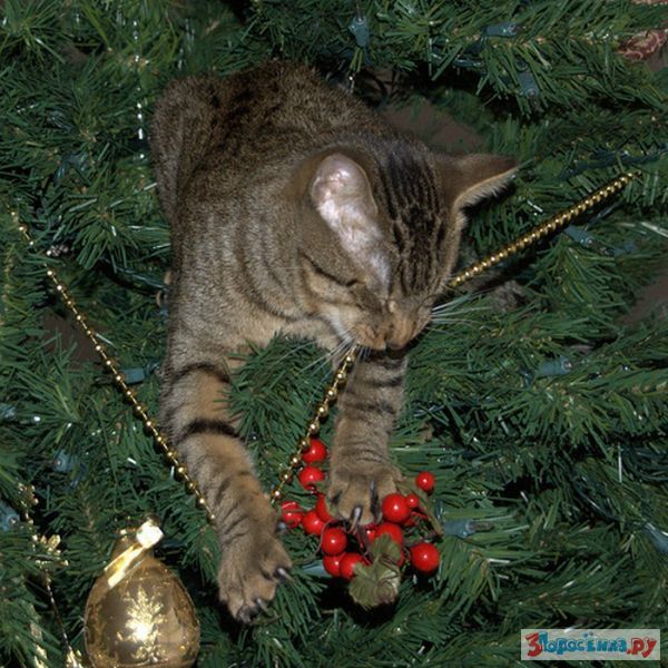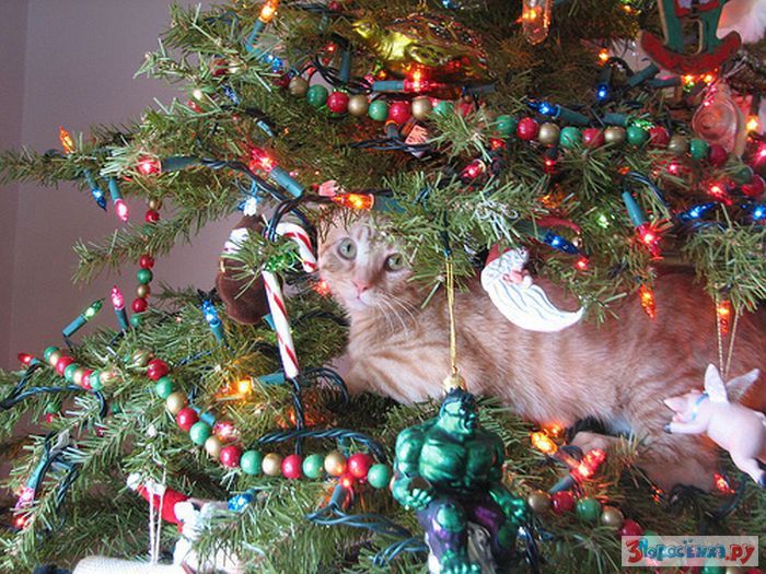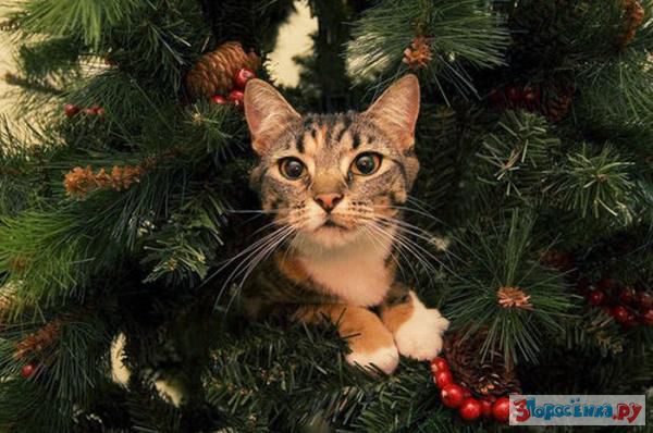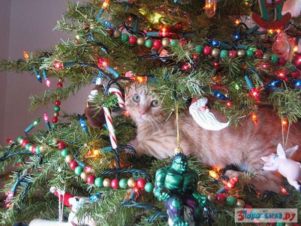 Коты любят новогодние елки