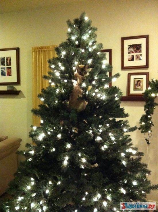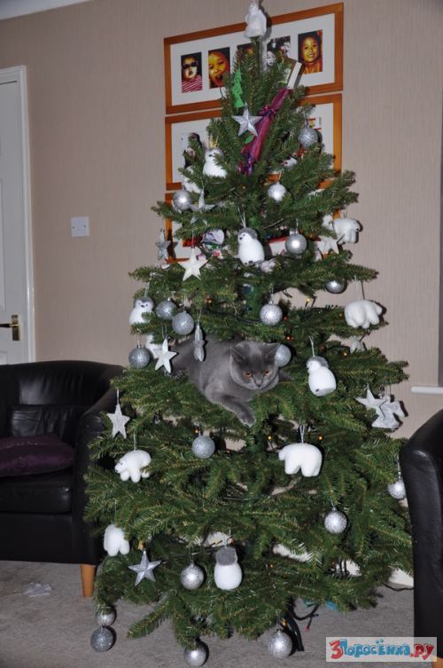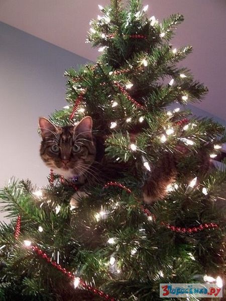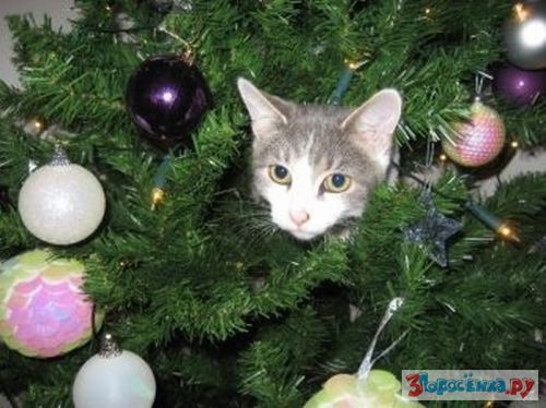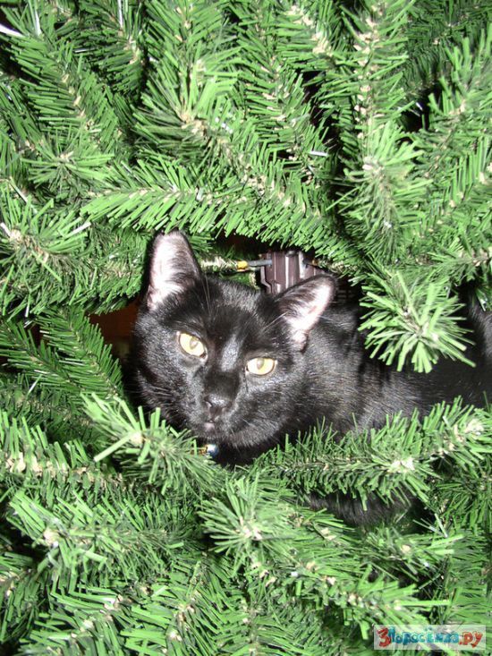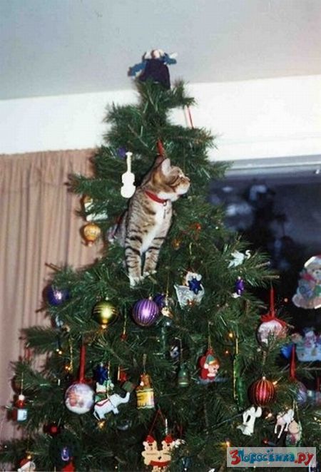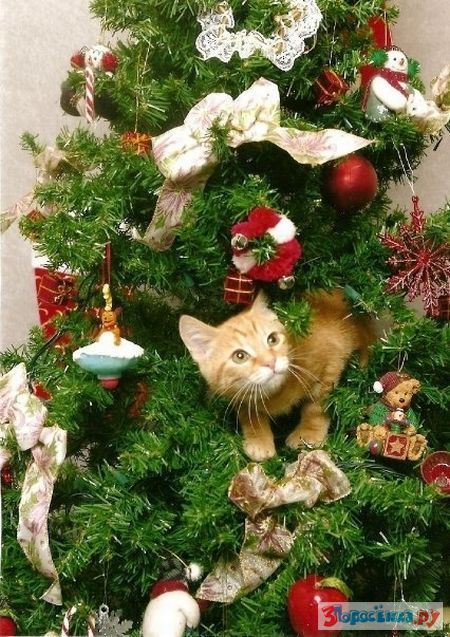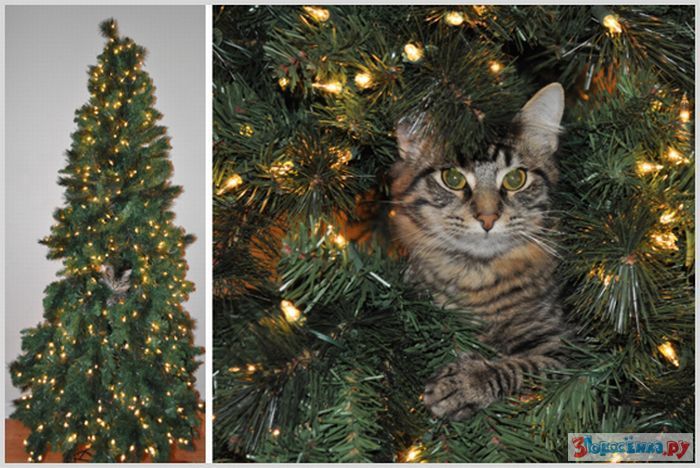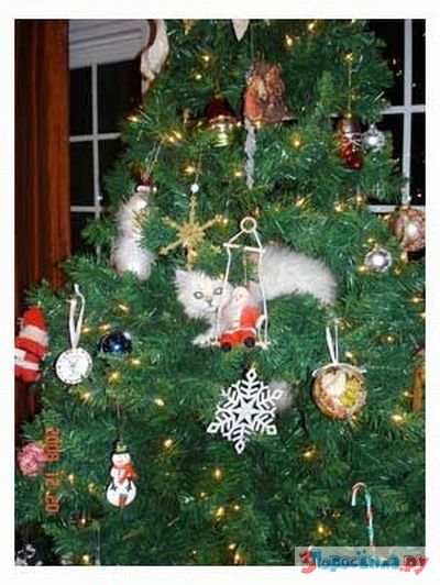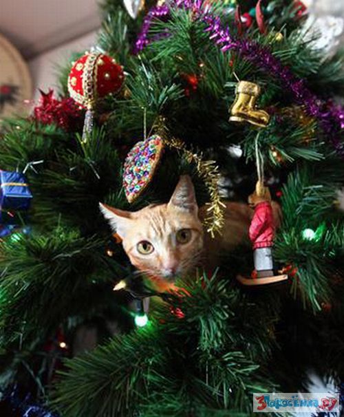 Коты любят новогодние елки
