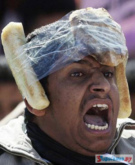 Египтянам сейчас не легко, приходится беречь голову от камней и полицейских дубинок, но если нет нормально шлема, что делать? Для них это не проблема, воспользовавшись подручными средствами, получились очень забавные каски и шлемы :)