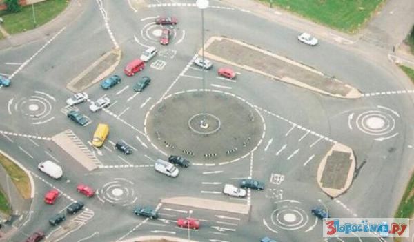 Развязка называется "Волшебная карусель" - и это не иллюзия, с шестью развязками, скручивающимися в одну. Ты должен крутиться по часовой стрелке на малых развязках и двигаться против часовой по самой большой в центре. Сумасшествие! Оказавшись там впервые, не каждому дано преодолеть эту развязку.
