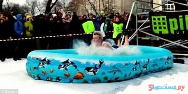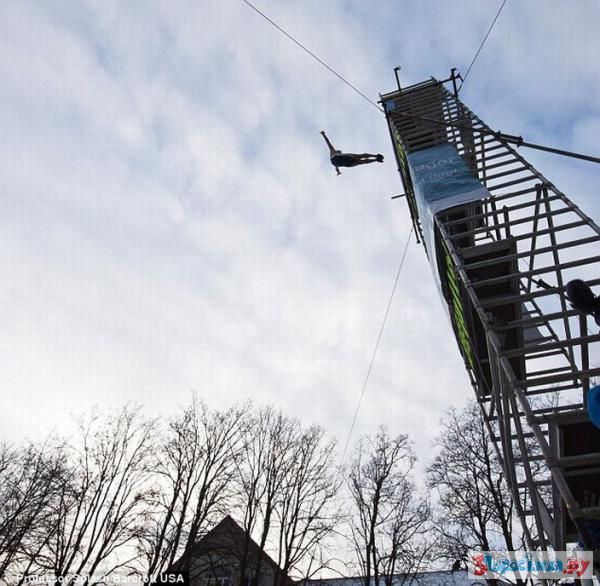 Этот отчаянный человек берёт всё большие высоты по прыжкам с высоты в детский бассейн ... Он уже не раз попадал в книгу рекордов Гиннеса с такими экстремальными прыжками, но ему этого мало и на этот раз он берёт высоту 11 метров ... Напоминаю, что глубина бассейна составляет всего 30 см ...