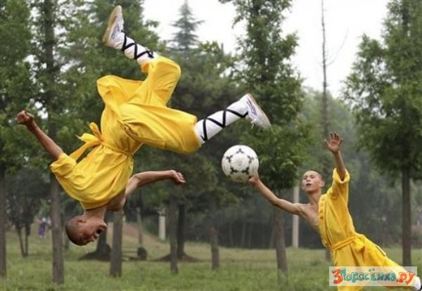 В прошлом году шаолиньские монахи организовали свою футбольную команду. Представьте на минутку - как монахи играют в эту популярную игру...