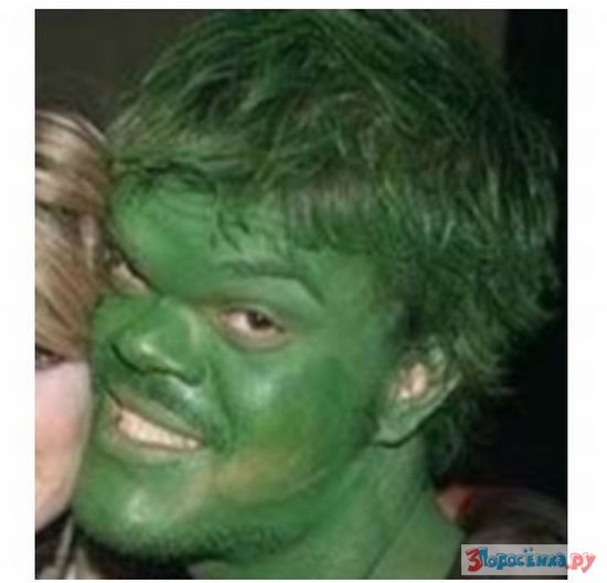 Если приглядеться, то можно с легкостью понять, что у этой девушки была интимная близость с парнем, который окрашен под Халка.