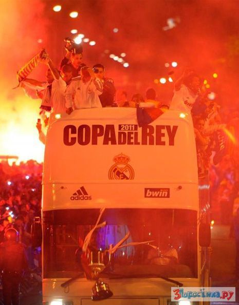Защитник "Реала" Серхио Рамос уронил Кубок Испании под колеса автобуса. Подопечные Жозе Моуринью, одолев "Барселону" в финальном матче (1:0), вернулись в Мадрид, где сразу же пересели в открытый автобус, чтобы проехаться по центральным улицам города и отпраздновать победу вместе с болельщиками.