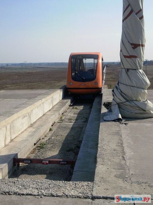 Интересный испытательный полигон на Украине. Там когда-то испытывали монорельсовую дорогу, которая так и осталась экспериментом.