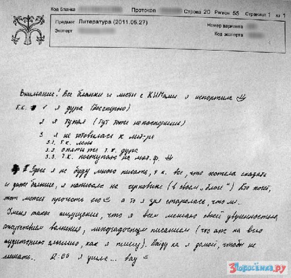 Школьница написала на бланке ЕГЭ: ?я дура?