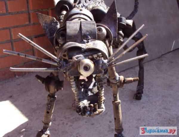 Автор этой скульптуры решил навести порядок у себя в гараже. После того, как было найдено множество автомобильных запчастей и металлолома, которые стало жалко выкидывать, было решено изготовить из них что-то интересное... Ну и не без помощи прямых рук получилось вот такое креативное творение