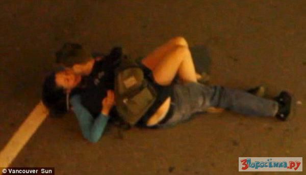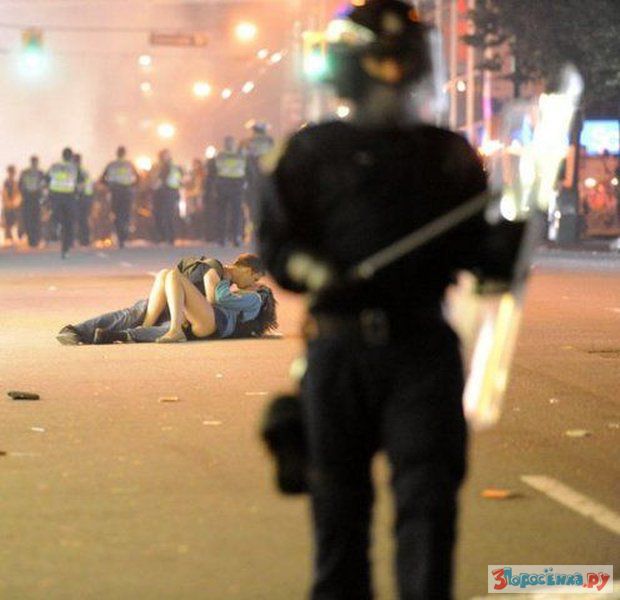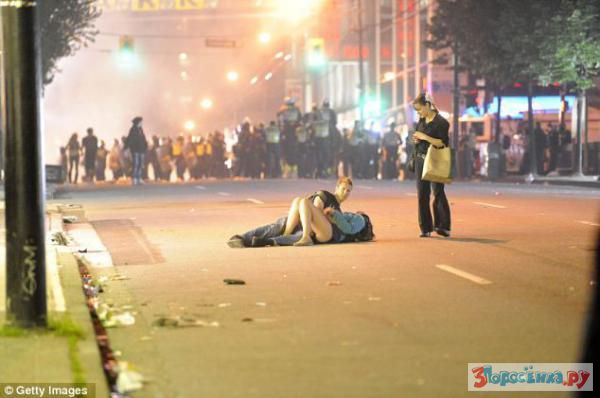 Эта фотография была сделана во время беспорядков, устроенных хоккейными фанатами в Ванкувере.