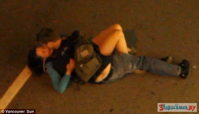 Но быстро выдохлись. После того, как полицейские отстали, Скотт поцеловал свою плачущую подругу, чтобы успокоить ее.