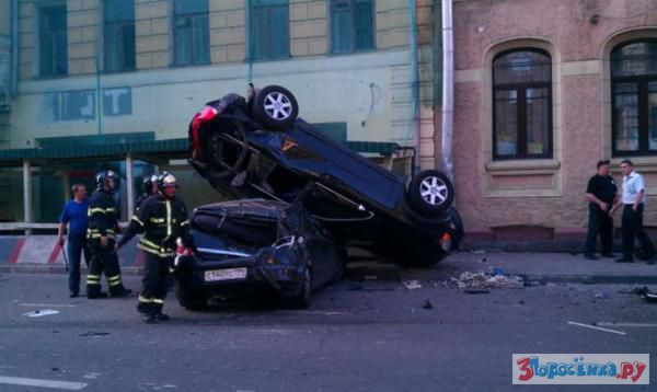 Авария Nissan GT-R на Садовнической. 6 июля вечером, произошло ДТП , Nissan GT-R на огромной скорости при не удачном меневре, на глазах у хозяина ВАЗ 2101 , который только, что прошел мимо своего авто на прогулку с собачкой , врезаясь в Копейку , бьет внедорожник под зад с такой силой, что тот подпрыгивает, переворачивается и падает на крышу другого авто, после этого в кадр попадает догоняющее колесо Nissana . Никто не пострадал.
