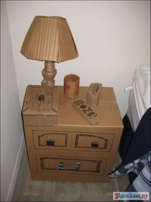 Когда есть много свободного времени и нужно обставить квартиру, на помощь вам придут старые картонные коробки. Сомнительное занятие, но каждому свое.