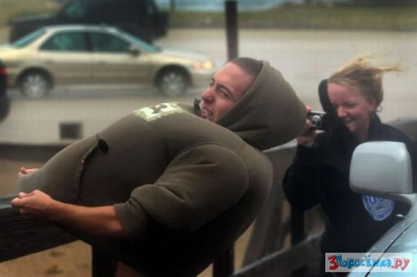 Ураган не испугал этих позитивных людей, они сумели посмотреть опасности в глаза и развлечь себя.