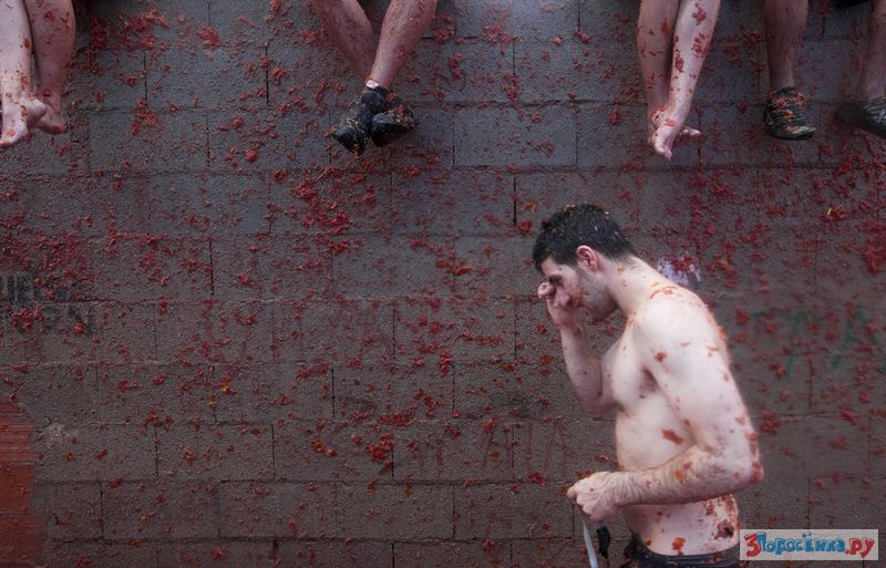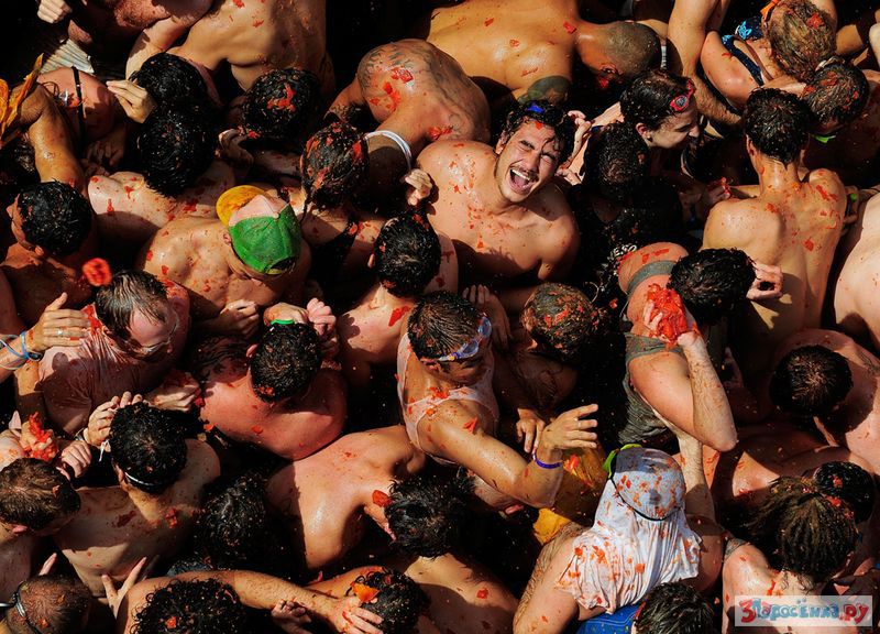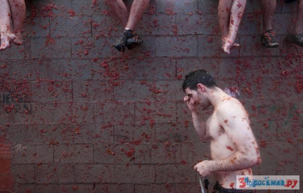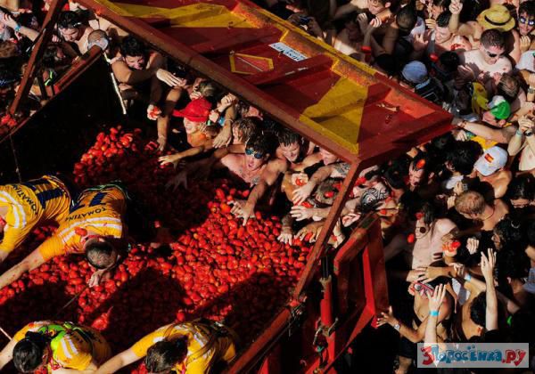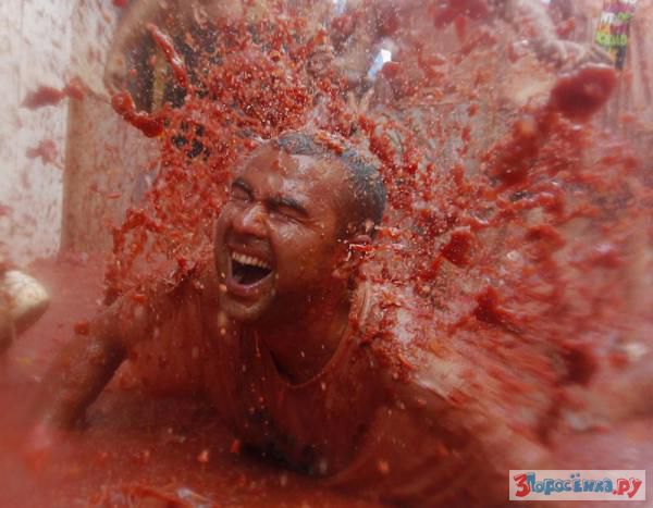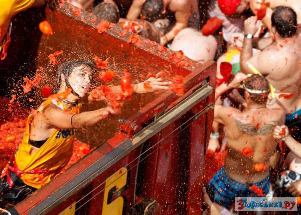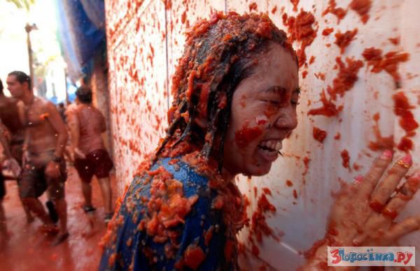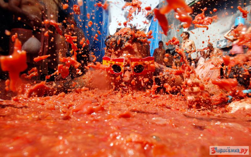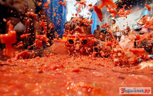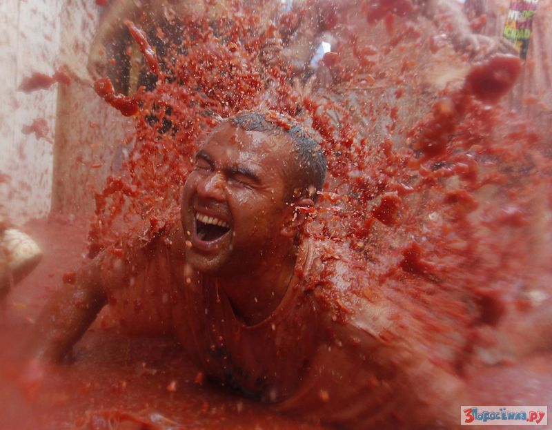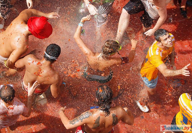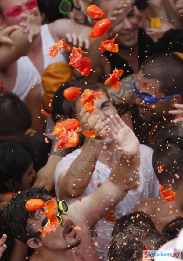 В массовой "битве едой" в городе Бунол на востоке Испании, 31 августа были с пользой задействованы тонны перезрелых помидоров. Фестиваль Ла Томатина, проводимый ежегодно в последнюю среду августа, славится многолетними традициями. Согласно одной из версий он берет свое начало в 1940-х годах. Тогда группа молодых людей, принимавших участие в параде "gigantes y cabezudos" (гигантов и больших голов), впервые использовала помидоры с овощного прилавка в качестве оружия. В 2011 году поучаствовать в битве собралось около 40 тысяч человек со всего мира.