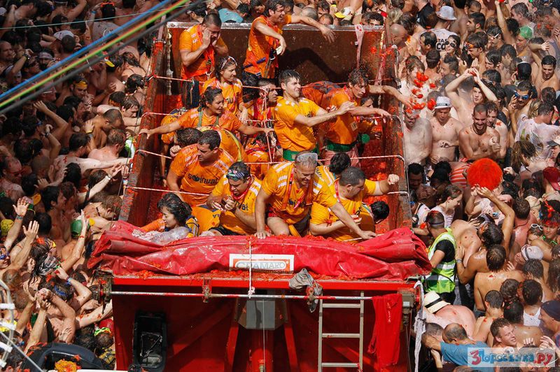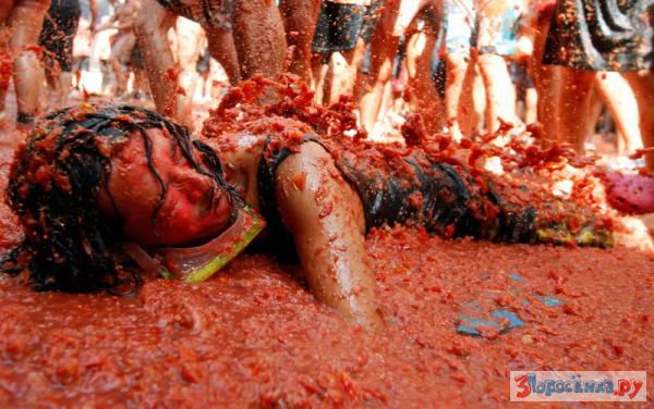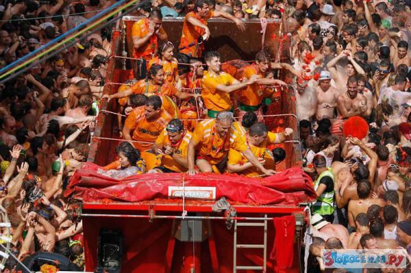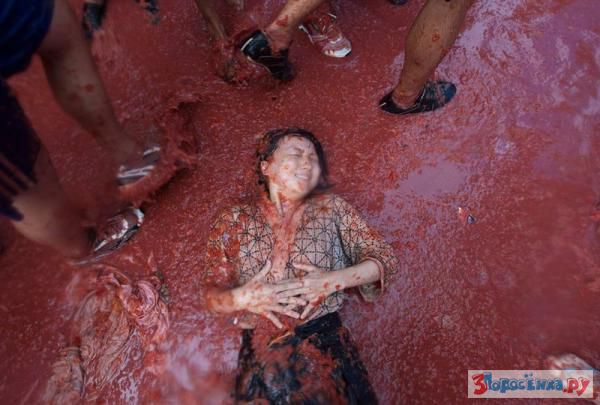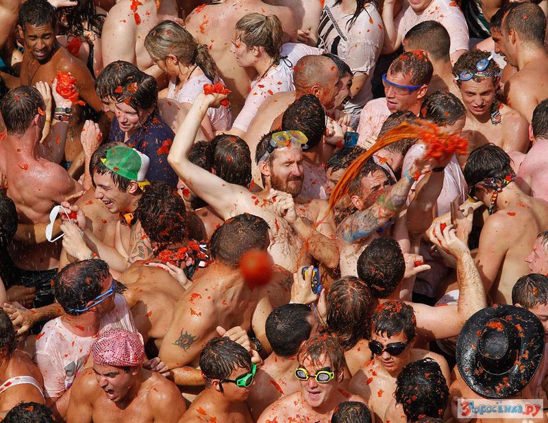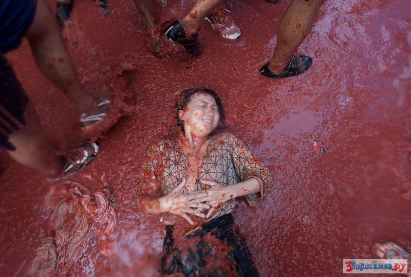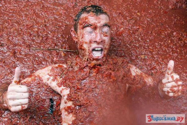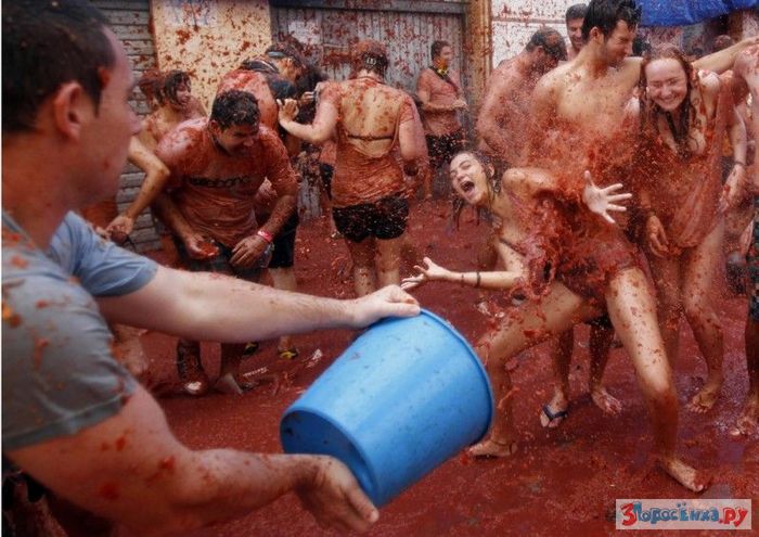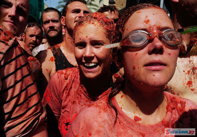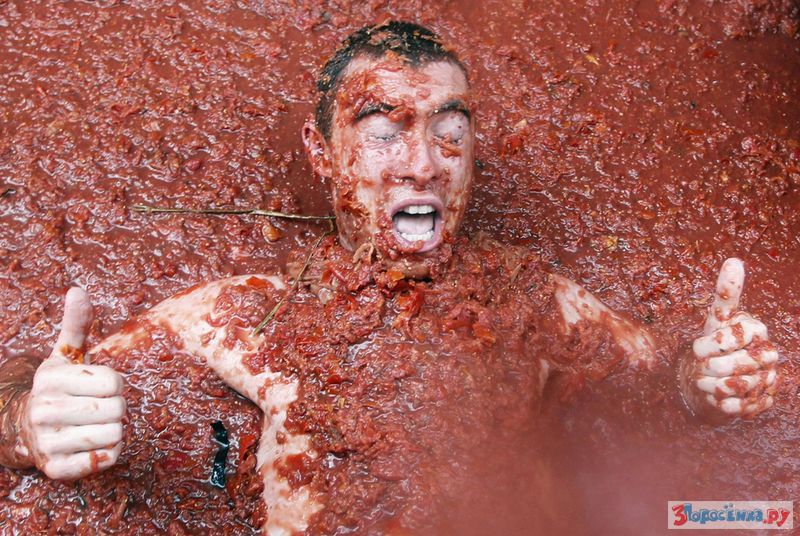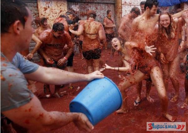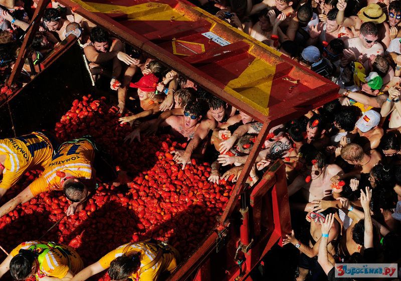 В массовой "битве едой" в городе Бунол на востоке Испании, 31 августа были с пользой задействованы тонны перезрелых помидоров. Фестиваль Ла Томатина, проводимый ежегодно в последнюю среду августа, славится многолетними традициями. Согласно одной из версий он берет свое начало в 1940-х годах. Тогда группа молодых людей, принимавших участие в параде "gigantes y cabezudos" (гигантов и больших голов), впервые использовала помидоры с овощного прилавка в качестве оружия. В 2011 году поучаствовать в битве собралось около 40 тысяч человек со всего мира.