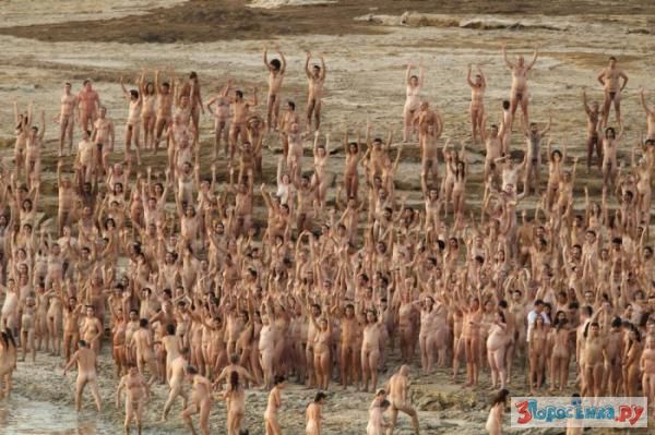 Скандально известный американский фотохудожник Спенсер Туник в субботу, 17 сентября, провел массовую голую фотосессию на берегу Мертвого моря. Для участия в съемках были отобраны 1000 добровольцев. Помимо израильтян в живой инсталляции Туника участвовали американцы, канадцы, британцы, немцы, французы, испанцы, россияне и представители других стран.
