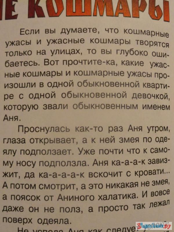 Обкуренный автор, явно довольный собой, последний раз макнул перо в чернила и дописал финал: "И уж куда оно там вместе с Аней полетело - вверх ли?.. вниз ли?.. - это мне, мои маленькие читатели и читательницы, неизвестно. Я ведь здесь только про домашние кошмары и ужасы рассказываю, а не про уличные".