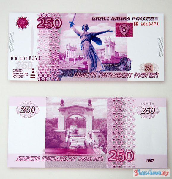 "Еще в 1990 году именно волгоградский художник выступил с предложением поменять на отечественных купюрах изображение каменного барельефа профиля Ленина на "живые" портреты известных деятелей." Может и удастся когда-нить такую в руках подержать... Купюру номиналом 250 рублей нарисовал Владислав Коваль. Известный волгоградский художник не баловался на досуге. Новая бумажка создана по заказу Банка России.