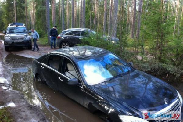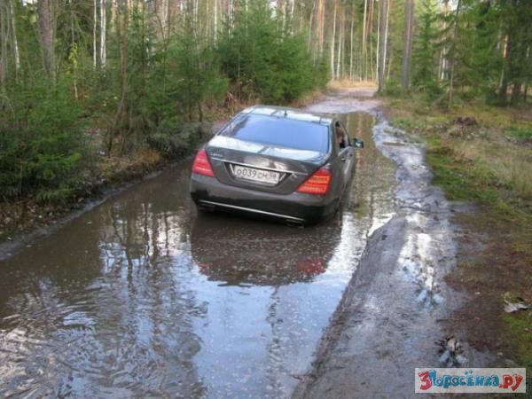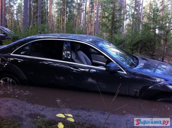 Зачем водитель этого 6-литрового Mercedes-Benz V12 W221 полез в эту лужу - не ясно, но скорее всего после большого количества спиртного. Во всяком случае, сумма, которую придется потратить на восстановление салона и, как вариант, двигателя явно отрезвит горячую голову.