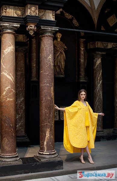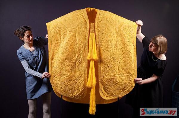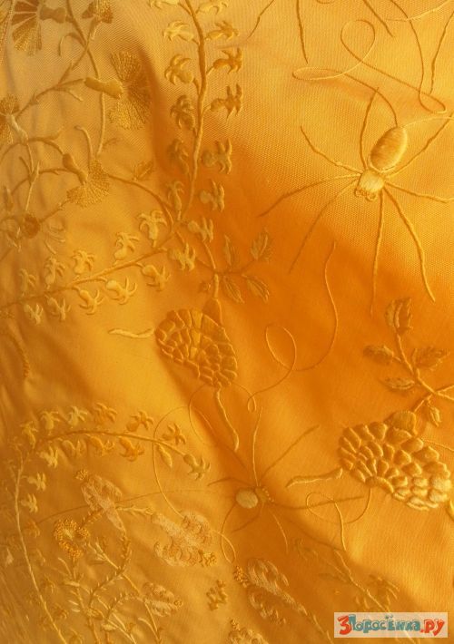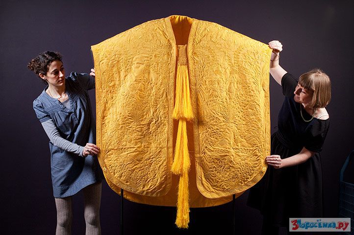 Музей Альберта и Виктории в Лондоне сегодня представил публике удивительный по своей красоте и мастерству шедевр ткацкого искусства. Оригинальный наряд можно носить как вечернее платье, плащ или накидку. Он выполнен из цельных золотых нитей, которые производят пауки-кругопряды на Мадагаскаре.