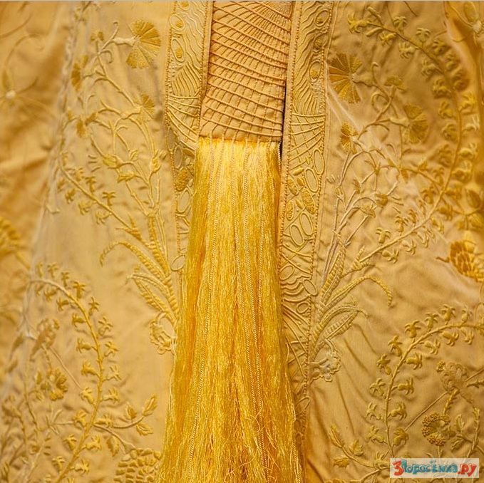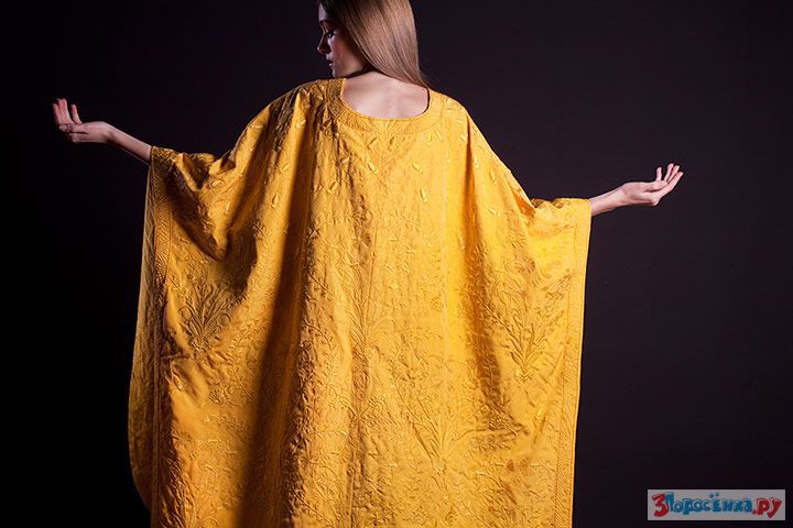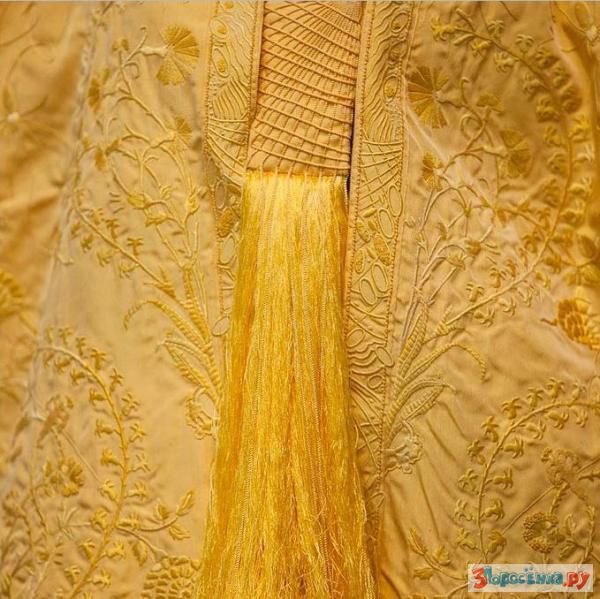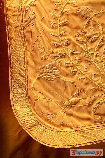 Яркий цвет полотна является природным. Вышивку, выполненную на наряде, можно смело назвать произведением искусства. Мастерам понадобилось 4 года на создание наряда.