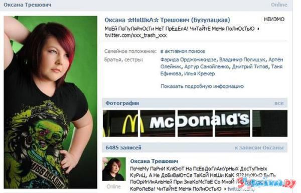 Оксана Трешович за 1 день взорвала VK. ПоЧеМу ПаРнИ КлЮюТ На ПсЕвДоГлАмУрНыХ ДосТуПнЫх КуРиЦ, А Не ДоБиВаЮтСя ТаКоЙ НяШи КаК Я?? НуЖнО БыТь ПоОрИгИнАлЬНей При ЗнаКоМсТвЕ Со МноЙ И ВсЁ Я ТвОя КоРоЛеВа! ЧиТаЙтЕ МеНя ПоЛнОсТьЮ!