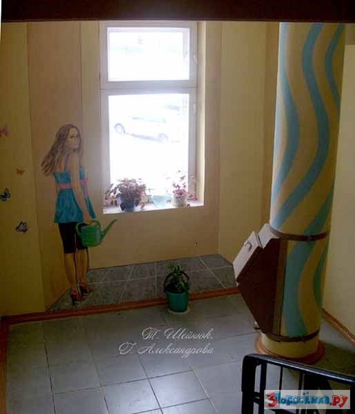 В Сарове Нижегородской области одно из товариществ собственников жилья признано лучшим за креативное украшение лестничных маршов. Стены подъездов украсили портретами самих жителей. Заказали профессиональному художнику, который познакомился с обитателями дома, а потом оставил им такой сюрприз. Вот можем же мы, когда захотим сделать среду нашего обитания приятной взору.