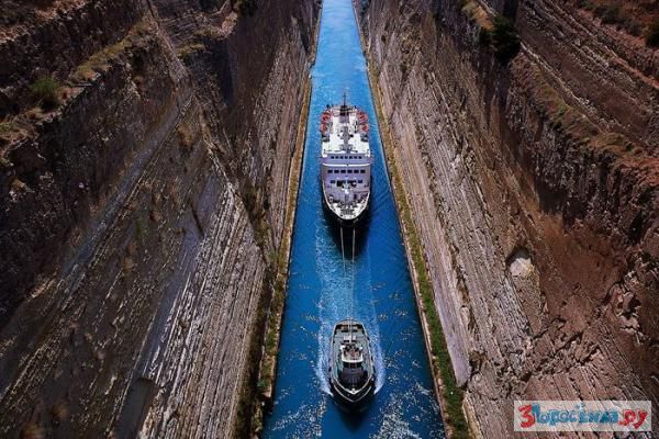 Коринфский канал уникальное место откуда можно увидеть два моря сразу, Эгейское и Ионическое.